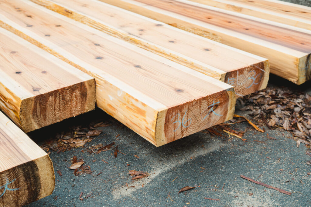 - 丸太材(皮剥きのみ)