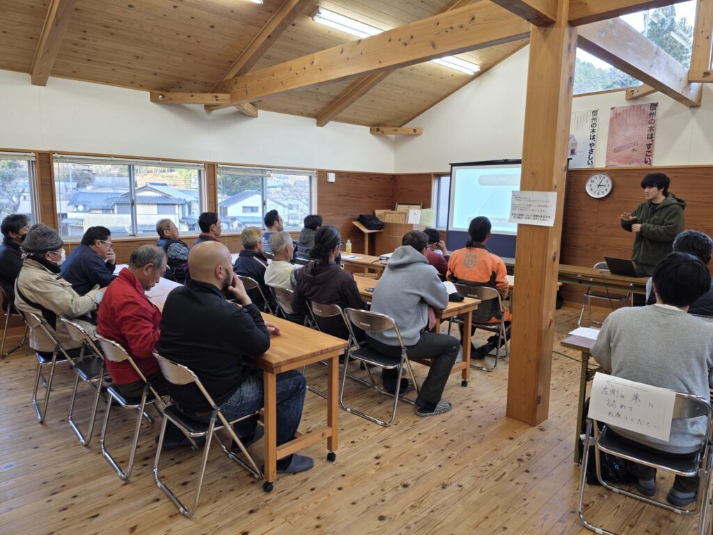 2025年12月2日、根羽村森林組合事務所で「森を考える会」を開催しました。森には様々な役割がありますが、今回は木材を生産し経済を回す「生産林」をテーマとして、現場の最前線で働く林業者、製材業者、山主の皆さん、村で森林に関わる皆さんが集まり話し合いました。