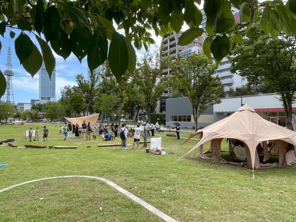 さらに、名古屋の久屋大通公園では「森との暮らしLAB」を開催。根羽村から運んだ丸太を使った体験コーナーに約50組の親子が集まり、都市の真ん中で「源流域の森」を体感する場をつくりました。「丸太を置いておくだけで、子どもたちが何時間でも遊び続ける」——その光景が、都市の人と根羽村の森をつなぐ可能性を、チームに改めて実感させていきました。