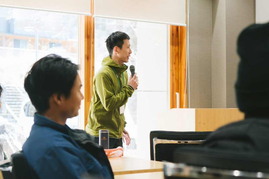 方向性に悩んでいた森林組合のメンバーが、講師として現時点での葛藤も語りながらも大切にしたいスタンスや次の戦略を自らの言葉で語る。1年前、「ビジョンを考えようとしてもかたちにならなかった」と悩んでいた大久保さんも、「誠実」を掲げられる森林組合を目指したい、と参加者に伝えていました。